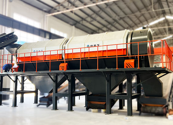 滾筒篩是分選生產線中應用非常廣泛的一種設備,它通過對顆粒粒徑大小來控制物料分選,分選精度高。滾筒篩的筒體一般分幾段,可視具體情況而定,篩孔由小到大排列,每一段上的篩孔孔徑相同,通過改變其篩子的直徑和范圍,實現物料的多級篩分作業。