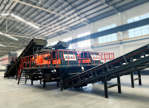 破碎線主機殼體采用特厚鋼板制造,內襯為高錳鑄鋼件,可更換;主機轉子盤安裝于水平軸上,轉子盤圓周分布有銷軸,軸向懸有錘頭;主軸用滾珠軸承支撐,循環油強制潤滑冷卻,并裝有溫度傳感器;進料口裝有液壓輥筒喂料裝置,位置一高一低,同向旋轉,能將大件松散物料壓扁,送入破碎腔內。