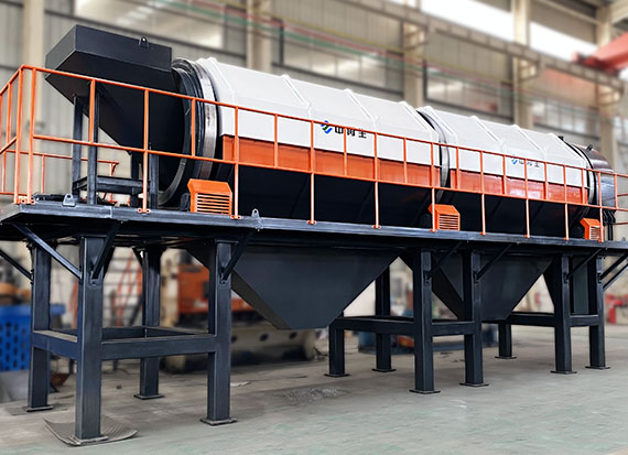 滾筒篩是分選生產線中應用非常廣泛的一種設備,它通過對顆粒粒徑大小來控制物料分選,分選精度高。滾筒篩的筒體一般分幾段,可視具體情況而定,篩孔由小到大排列,每一段上的篩孔孔徑相同,通過改變其篩子的直徑和范圍,實現物料的多級篩分作業(yè)。