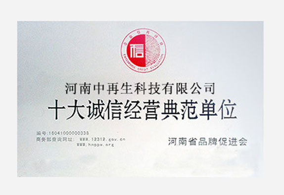 • 十大誠信經營典范單位