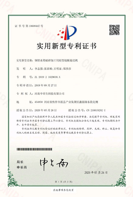 • ZL201921629630X_銅鋁水箱破碎加工用輕型鏈板輸送機(jī)