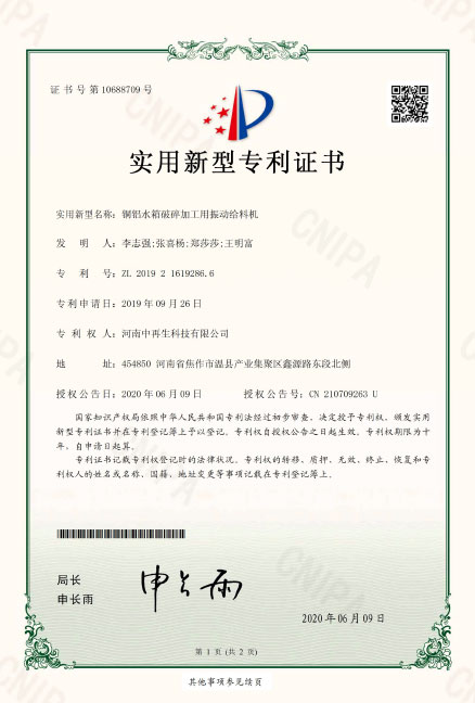 • ZL2019216192866銅鋁水箱破碎加工用振動(dòng)給料機(jī)
